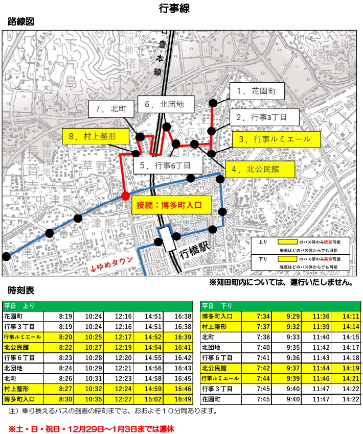本ページの情報は委託により作成されています最新情報と異なる場合がありますので、バス事業部までご確認ください。