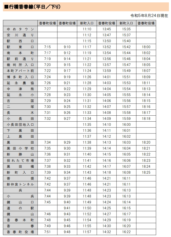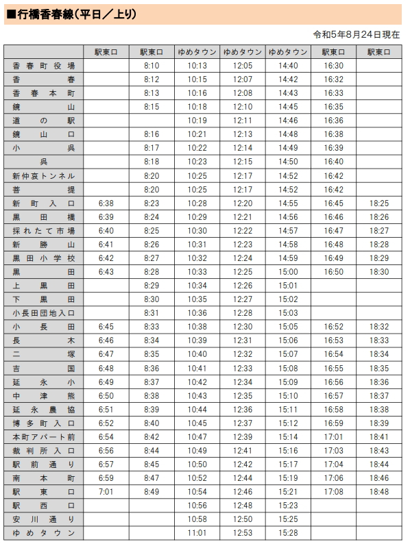 - 路線バスは一般交通網で運行されるため、道路状況の影響を受けやすく、時刻表通りに到着しない場合があります。