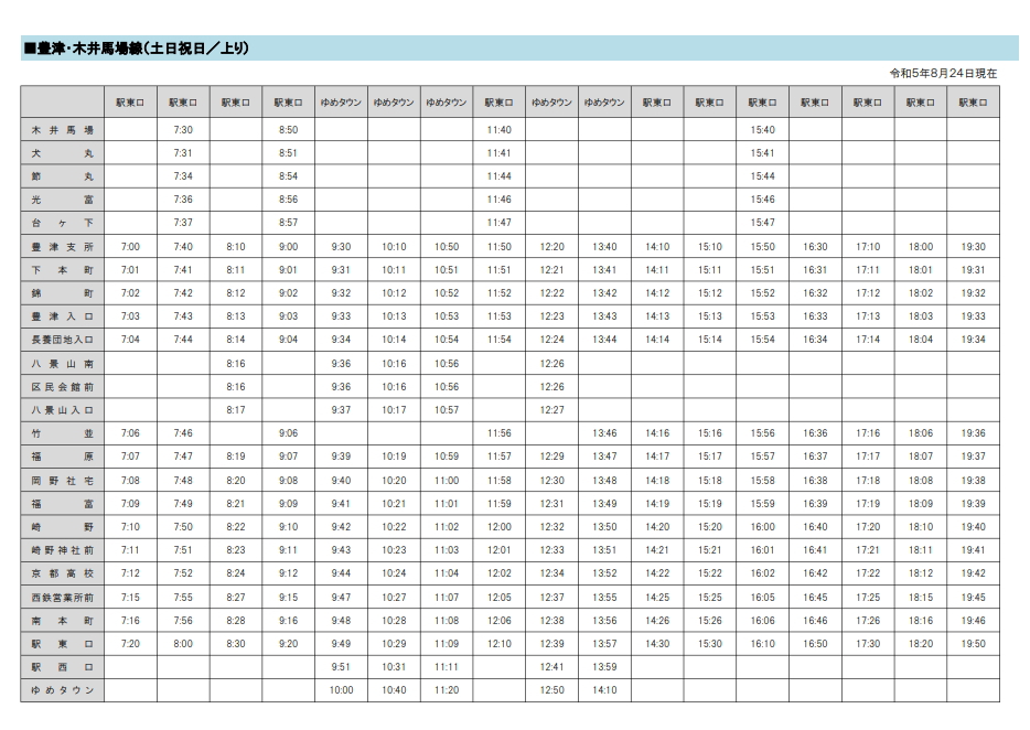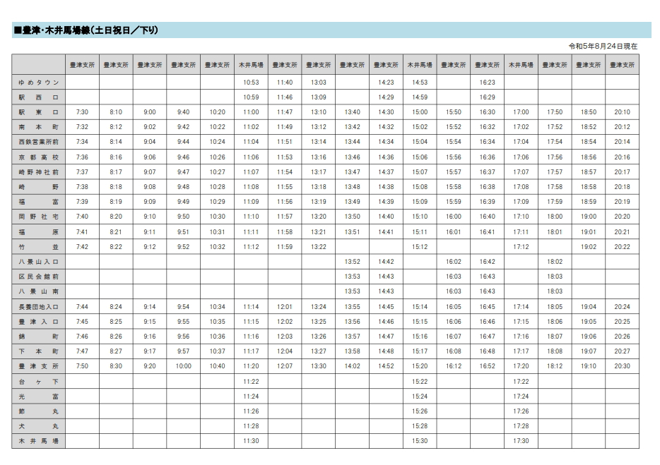 最新情報と異なる場合がありますので、バス事業部までご確認ください。