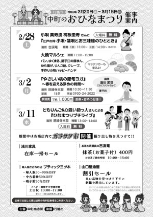 2月20日(金)~3月15日(日)は中町一帯で「中町のひなまつり」開催
