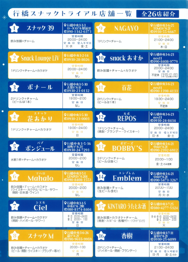 2月26日~4月26日まで『行橋スナックトライアル』ではしご酒!