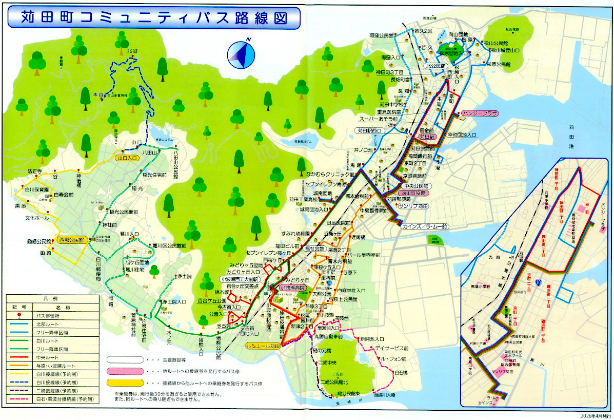 - 「小波瀬病院」「苅田駅」「パンジープラザ」「苅田町役場」にて別ルートへの乗り継ぎが可能です。(※同ルートの乗り継ぎは不可)