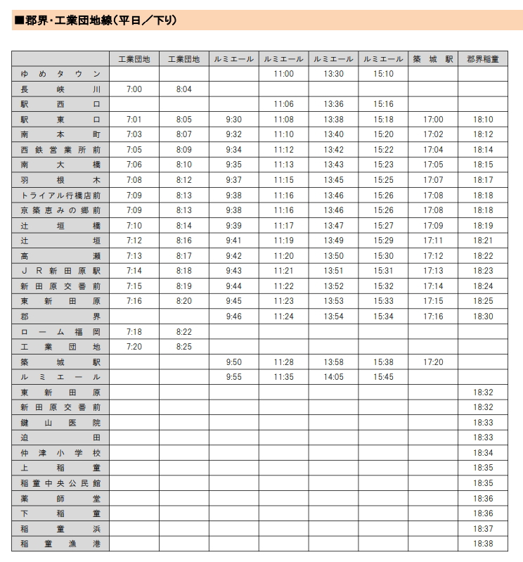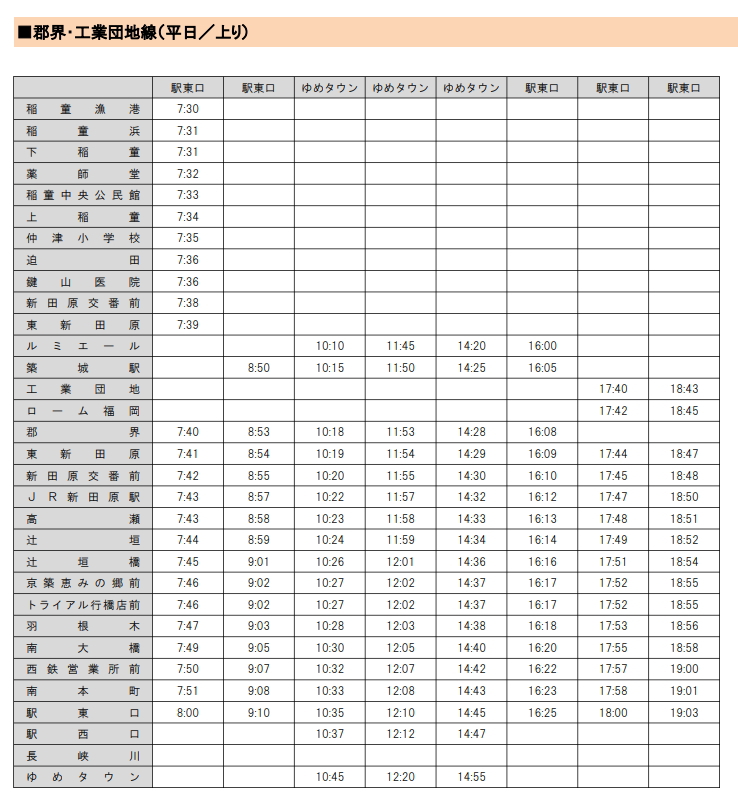 - 路線バスは一般交通網で運行されるため、道路状況の影響を受けやすく、時刻表通りに到着しない場合があります。
