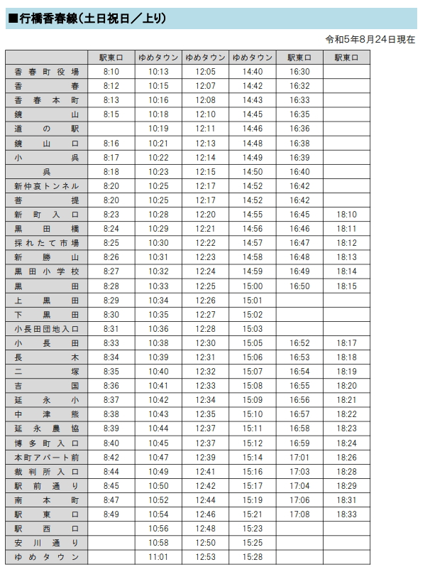 最新情報と異なる場合がありますので、バス事業部までご確認ください。