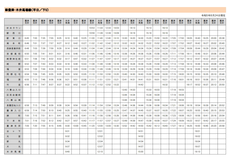 最新情報と異なる場合がありますので、バス事業部までご確認ください。