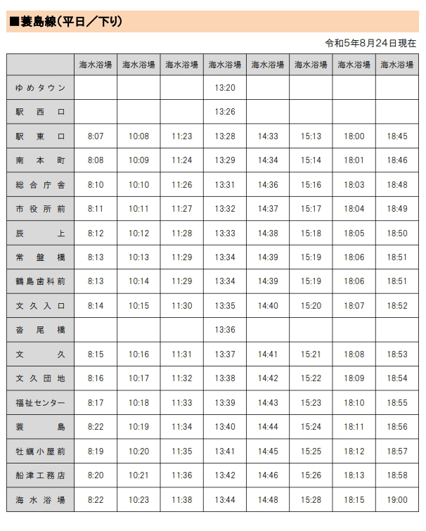 - 路線バスは一般交通網で運行されるため、道路状況の影響を受けやすく、時刻表通りに到着しない場合があります。