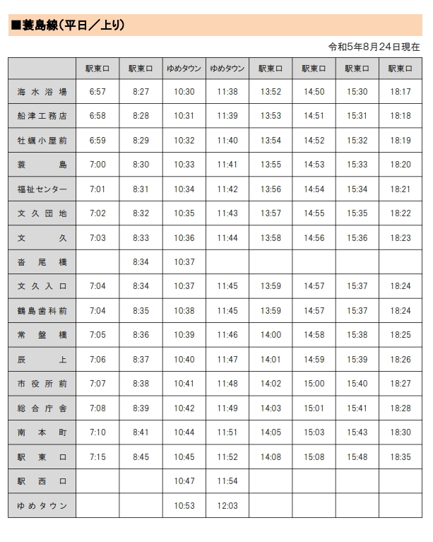 最新情報と異なる場合がありますので、バス事業部までご確認ください。