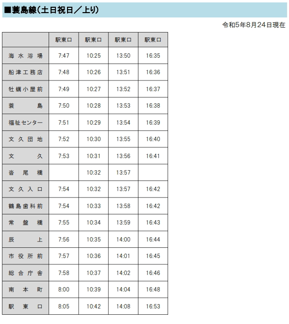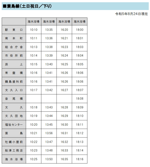 最新情報と異なる場合がありますので、バス事業部までご確認ください。