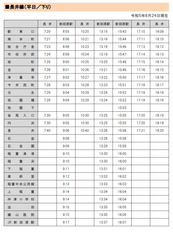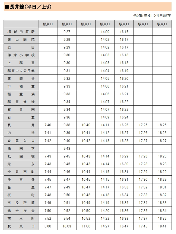 路線バスは一般交通網で運行されるため、道路状況の影響を受けやすく、時刻表通りに到着しない場合があります。