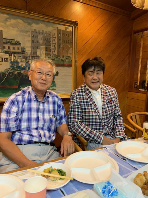 - 九州に来訪された著名指揮者の佐渡裕氏と友人らと共に門司港駅のレストランに集い楽しいひと時を過ごしました。佐渡氏は育徳館の演奏協力で来訪され、食事会では育徳館交響楽団の為のチャリティーオークションが開かれました。またこの日はゴルフを楽しまれた後で大変ラフな印象です。
