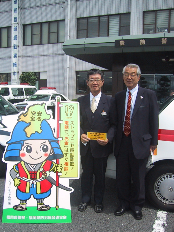 5月14日、豊前市近郊のタクシー事業者が集まり豊前警察署で行われた調印式で協力関係を結びました。この調印式はニセ電話詐欺に振り込みを要求された被害者が必ずタクシーを使っている事から、タクシー車内にて未然に防ごうと言うもの。実際に当社豊前営業所の森岡乗務員は市役所のATM前で還付金を受け取る為に銀行員と待ち合わせていると言うお客様をお乗せし、機転で市役所に相談したことから未然に防ぐことが出来ました。森岡さんはこの式典の冒頭で感謝状が送られています。豊前警察署長は『最近は人気のないATMやコンビニのATMへ誘導されるケースが多く、高齢者がこのような場所に振り込みに行く場合は積極的に会話し詐欺を見抜いて欲しい』と要望。協定では異変に気付いた乗務員が積極的に通報し警察側はこれに対応するとの内容に調印しています。