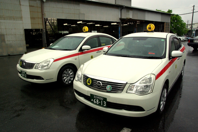 ブルーバードを購入したが車長が中型車。 日産製タクシーのご用命が多い苅田営業所用の車輌としてブルーバードを導入しました。しかし多くの都市圏では無いはずの問題が浮上、それは京築地域にタクシー『中型車』の規定が残っていた事です。入荷した車体はタクシー小型車登録に車長がわずか1cmほど長く、中型車で登録すれば料金が高くなります。これではお客様に提供できないとして運輸局に相談し車短改造へ踏み切りました。その後、審査も通過し4月27日に苅田営業所で運行を開始しています。何故ブルーバードでなくてはならないのか? 日産にも新型タクシー仕様車が提供されているにも関わらず、この車種を導入する理由は床下の高さにあります、高齢者や歩行困難者が両足を地面に接地したまま座るように乗り込むため、特に田舎地域には「低さ」が不可欠なのです。もちろん新型車はその座席の高さと広さが快適感となり旅行バッグなど大型荷物も積み易いメリットがあります。今後は低床車と新型車のバランスを見て複数の車種を導入して行く見通しです。2017年04月27日