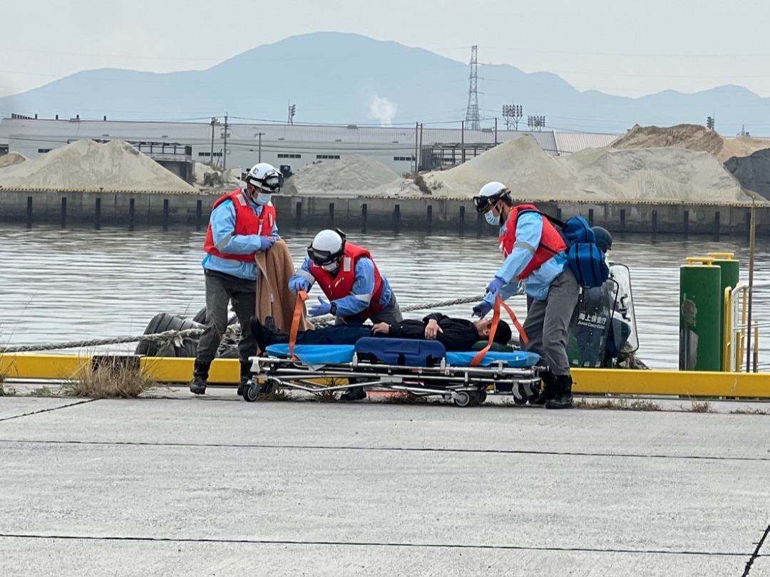- 爆発物発見時の処理、被害者を想定した救急搬送、 密航者を確保する警察の対応など、 関係機関が連携して行動する様子を見学し、 港湾の安全が日常的な備えによって支えられていることを 改めて実感しました。